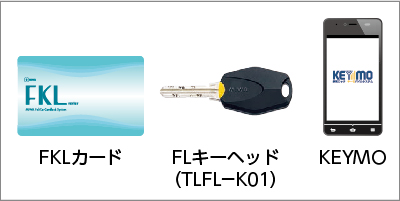 MIWAロック社のFKLカード、キー一体型のFLキーヘッド、おサイフケータイで施解錠するキーモバイルシステム(KEYMO)に標準対応。